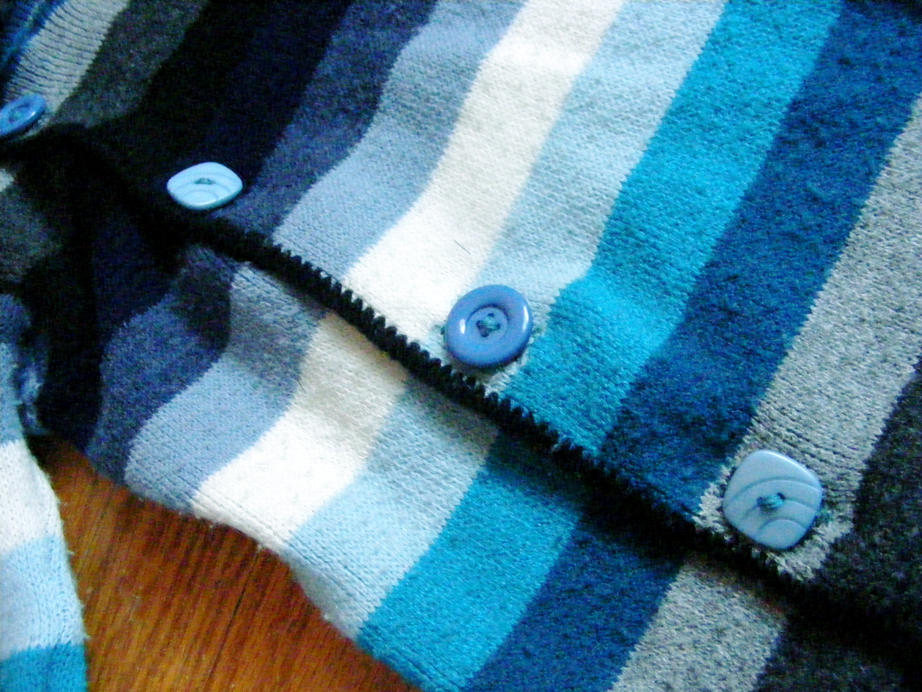 Thankfully, you can’t always see my terribly made button holes under these buttons. I used the existing edge of the cardigan, plus the sleeves, bottom of the sweater, and the hood – no hemming!