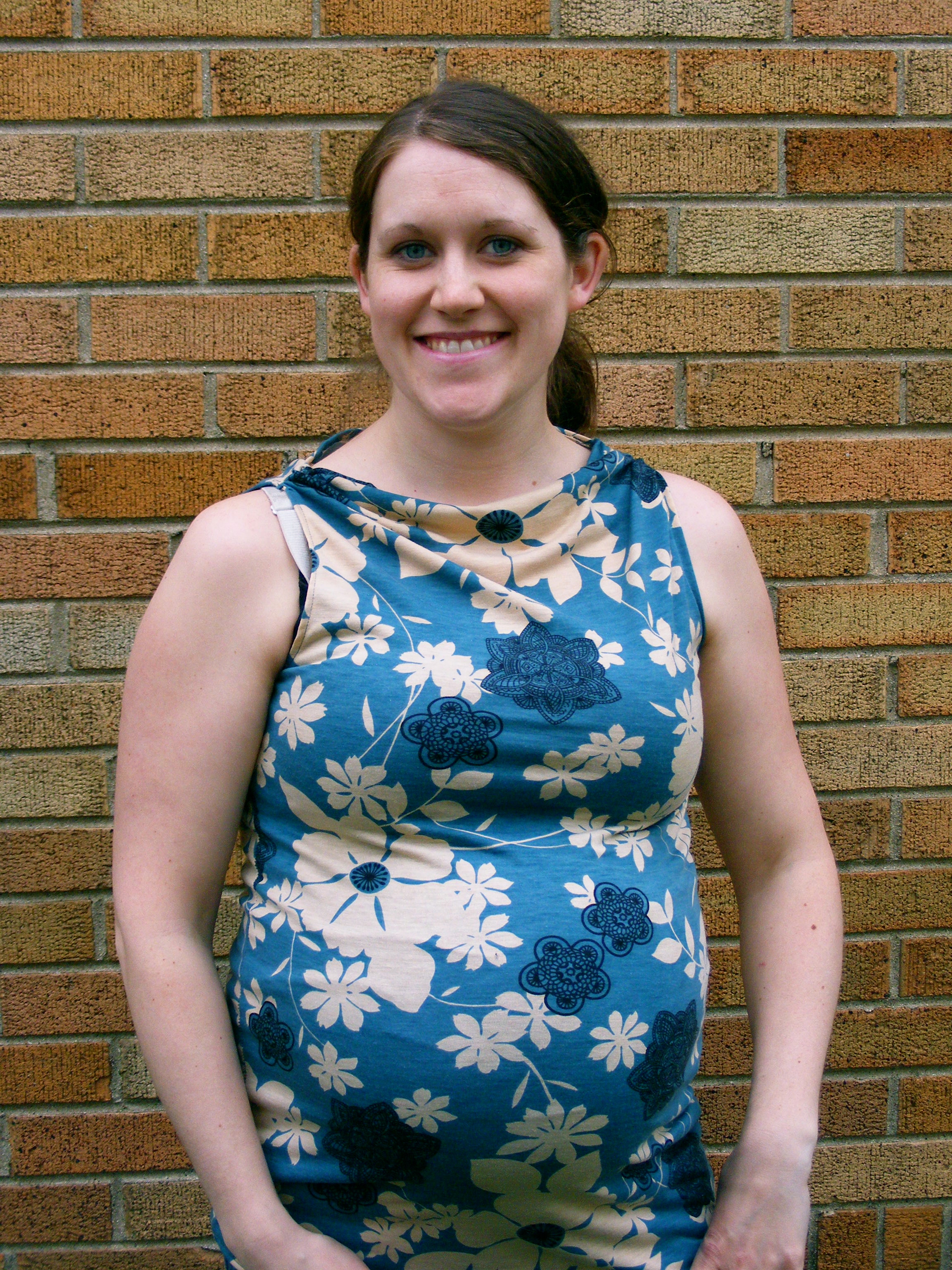 This top is made from a jersey knit I bought quite awhile ago at Joann’s, from my own pattern. I made sure to make this one long enough that it will definitely last through my pregnancy. It will probably even be a good post-partum shirt.