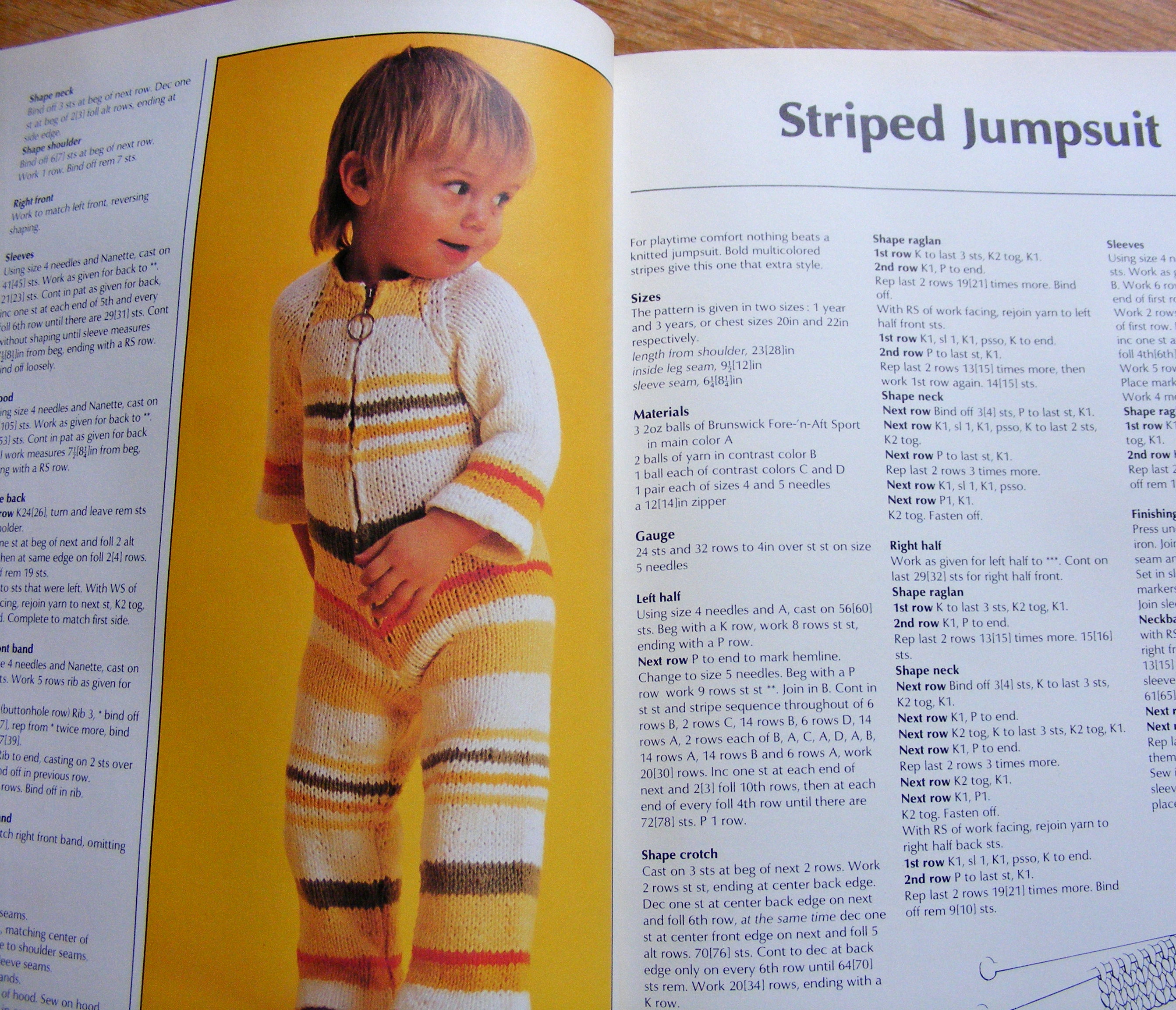 I almost passed it by, but I’m so glad I didn’t. This little gem is 30 years old [is that considered vintage? If so, then so am I…] and is filled with patterns and instructions for all things baby.