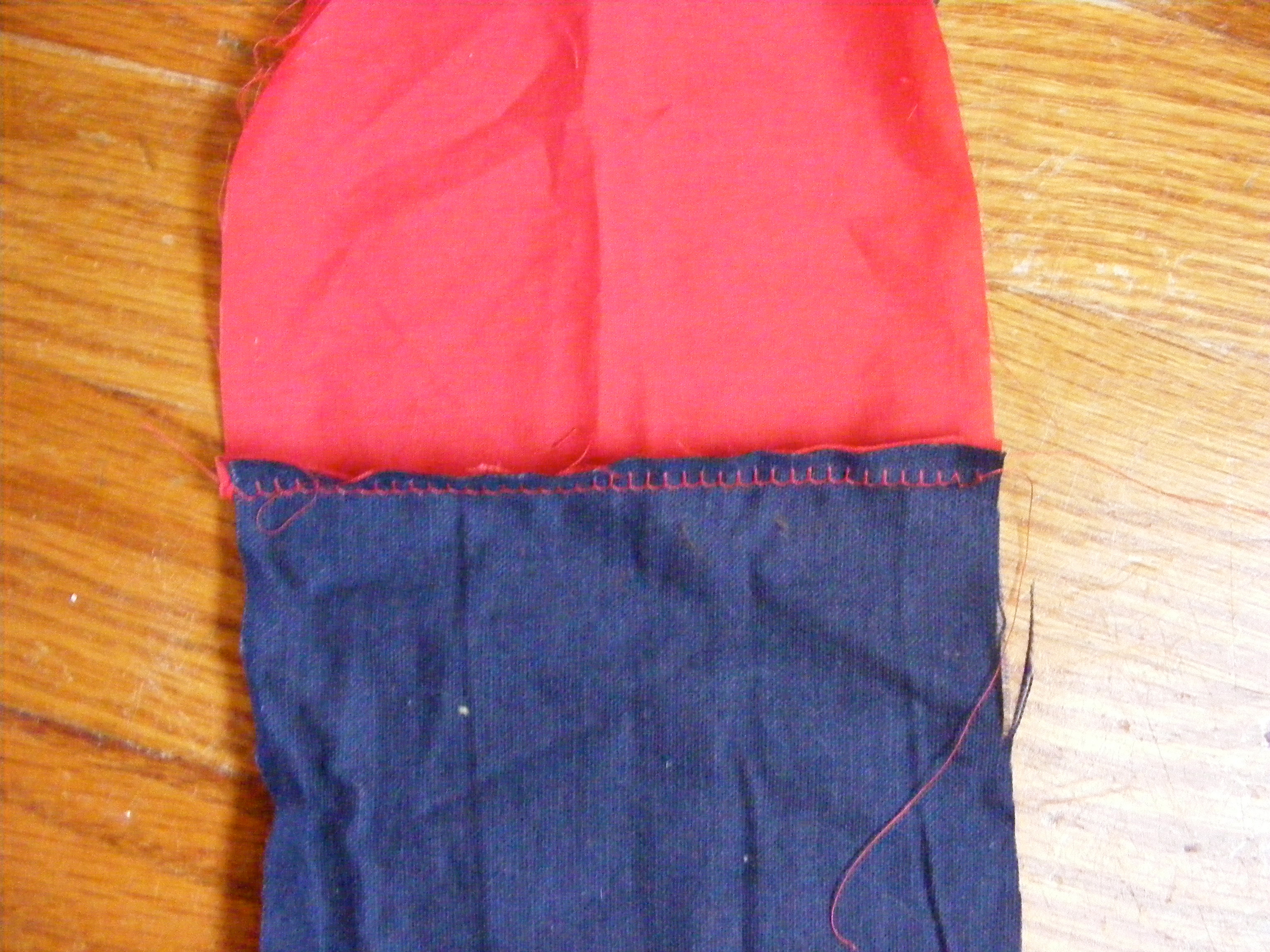 3. Unfold and zig-zag the short end of the two pieces of fabric, right sides together.