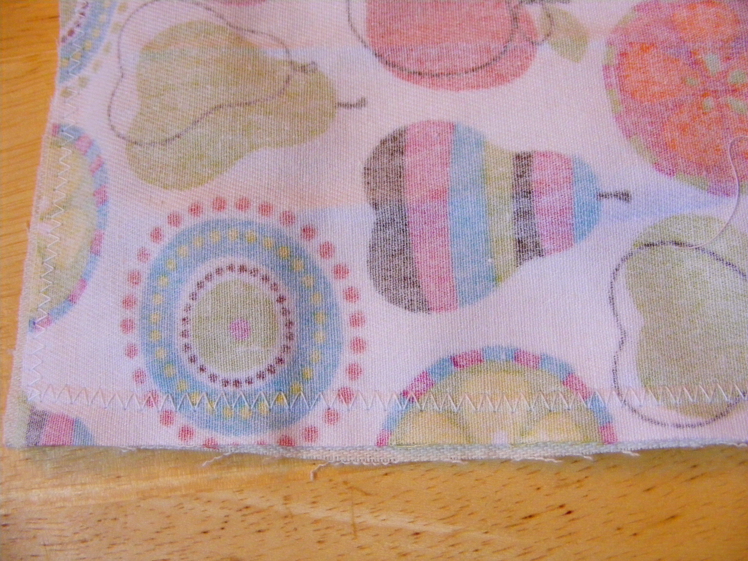 3. Put the fabric pieces right sides together, then zig-zag stitch around three sides.